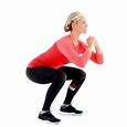 Bend at your hips and knees to lower yourself into a squatting position. Hinge forward with your hips and bend your knees slightly to bring your body down lower to the floor. Keep your back straight and your arms in close to your body as you do the exercise.